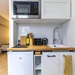 تتميز مرافق الخدمة الذاتية بالمطبخ الصغير مع الغلاية الكهربائية ومحمصة الخبز والآنية الزجاجية. وتقع محطة مترو ستراسبورج - سان دوني أيضًا في المنطقة المجاورة مباشرة ل الشقة.